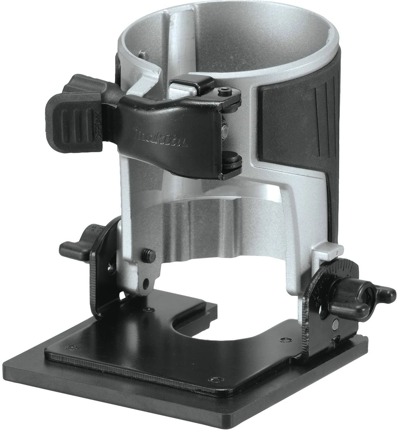 The Makita Tilt Base Set (198987-9) is an ideal accessory for Makita’s line of compact routers, their 18V LXT Lithium‑Ion Brushless Cordless model XTR01Z and their 1‑1/4 HP* Corded model, RT0701C.. The Tilt Base has positive stops at -30 degrees and 45-degrees. It is ideal for trimming laminated boards and other thin materials.
