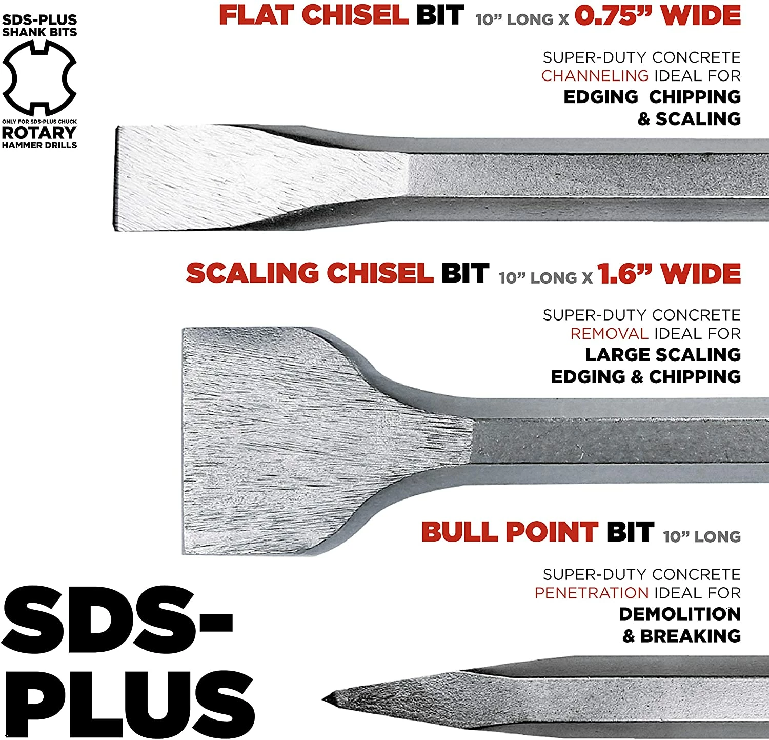 Size:3 Piece | SDS+ Demolition Bit Set