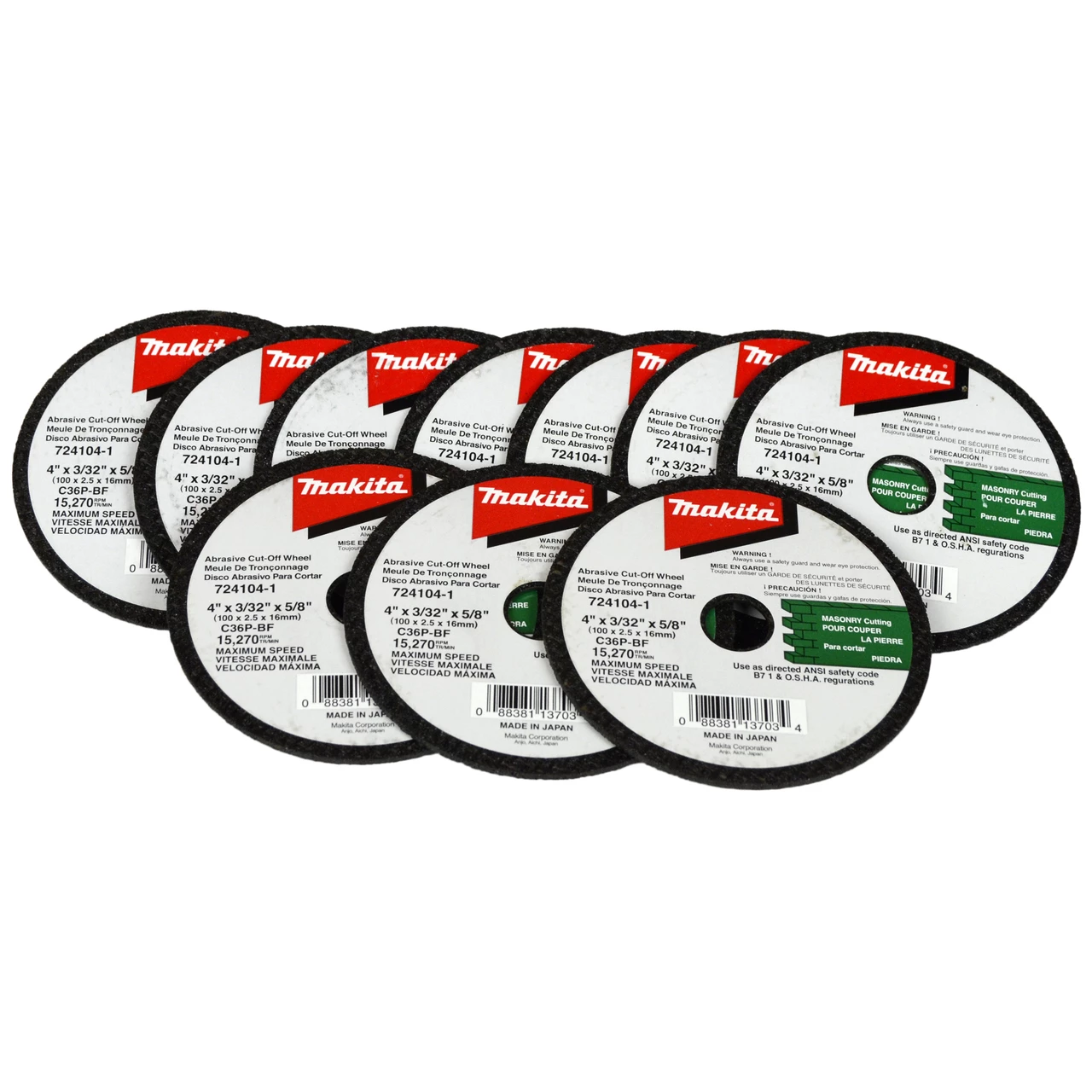 This Makita 724104-1-10A 4 in. x 3/32 in. x 5/8 in. Cut-Off Wheel 10 Pack