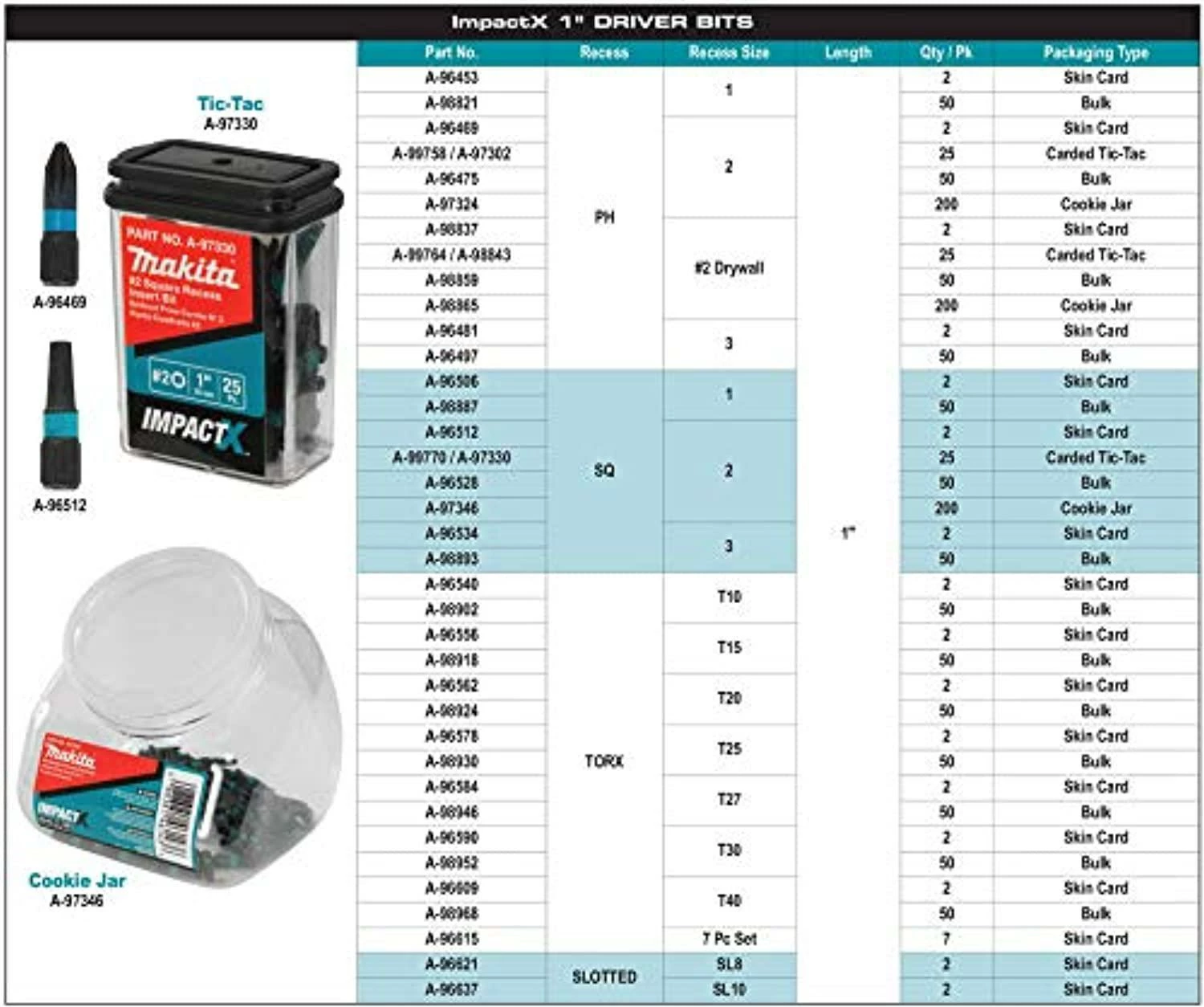 makita a-96528 impactx 2 square recess 1? insert bit, 50 pack, bulk