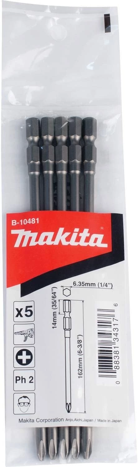 Makita B-10481 Number 2 Phillips Power Bit (5 Pack), 6-3/8″