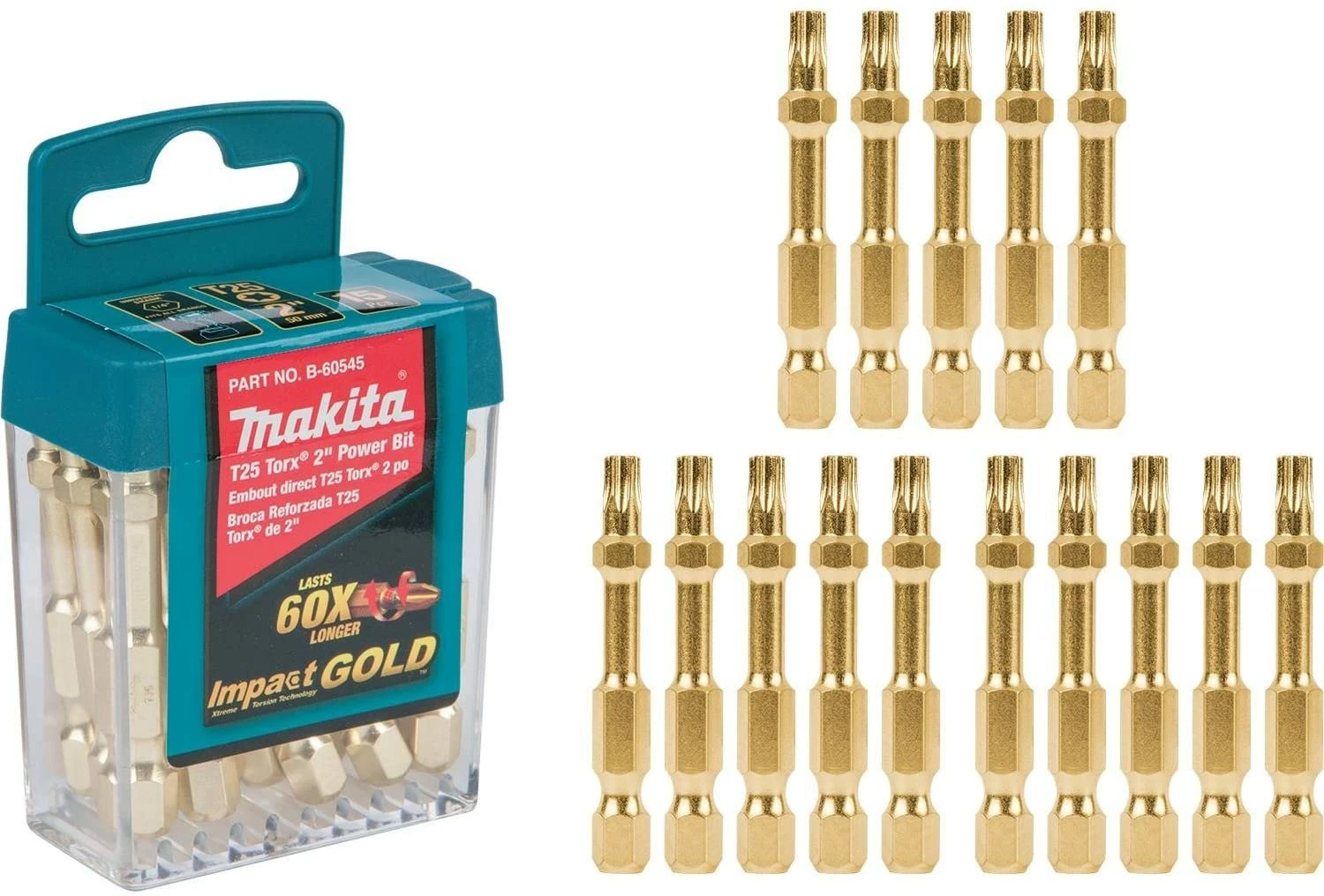 Makita B-60545 Impact Gold T25 Torx 2â³ Power Bit, 15/Pk