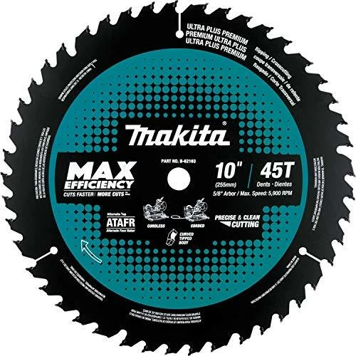 - 45 tooth/5/8″ Arbor; Carbide tipped for premium, crosscutting in construction lumber and plastics