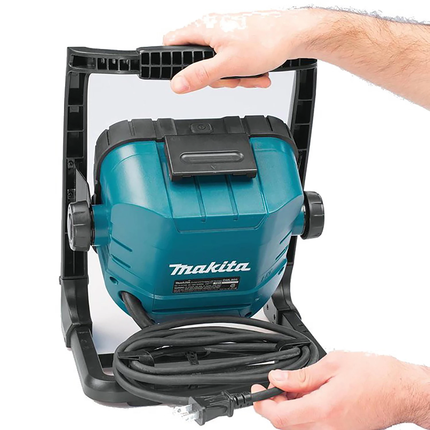 The Makita DML805 18V LXT Cordless/Corded Lithium-Ion LED Flood Light provides ultra-bright illumination, versatility, and convenience. It features Extreme Protection Technology (XPT), engineered for improved dust and water resistance for operation in harsh conditions when using DC power.