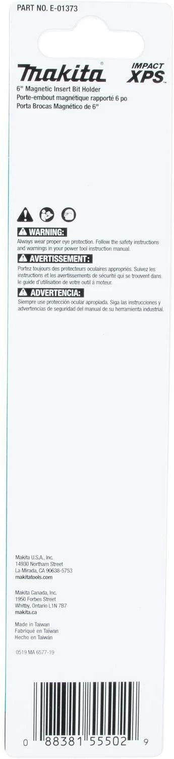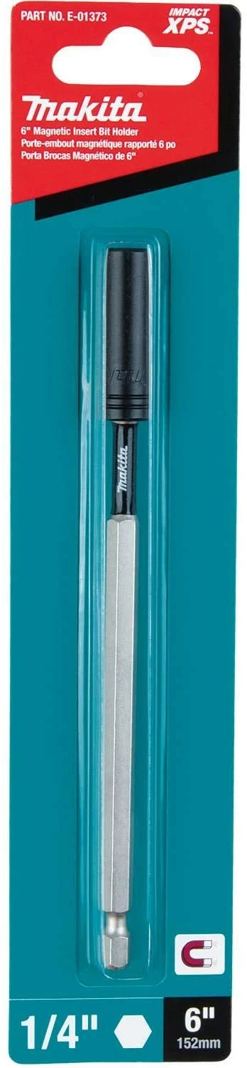 Makita Impact XPS is new innovation in fastening with insert bits and fastening accessories built for the demands of the professional contractor. The Makita ImpactXPS 6″ Magnetic Insert Bit Holder is ideal for use with ImpactXPS Power Bits (sold separately) for added holding power. The bit holder is engineered to allow the torsion section of the bit holder to flex under load, taking pressure off the bit tip for increased durability in high torque applications. The two-piece design is engineered to allow the torsion technology to fully activate. The high quality steel construction is engineered for increased durability and features a matte nickel surface for best in class corrosion resistance.