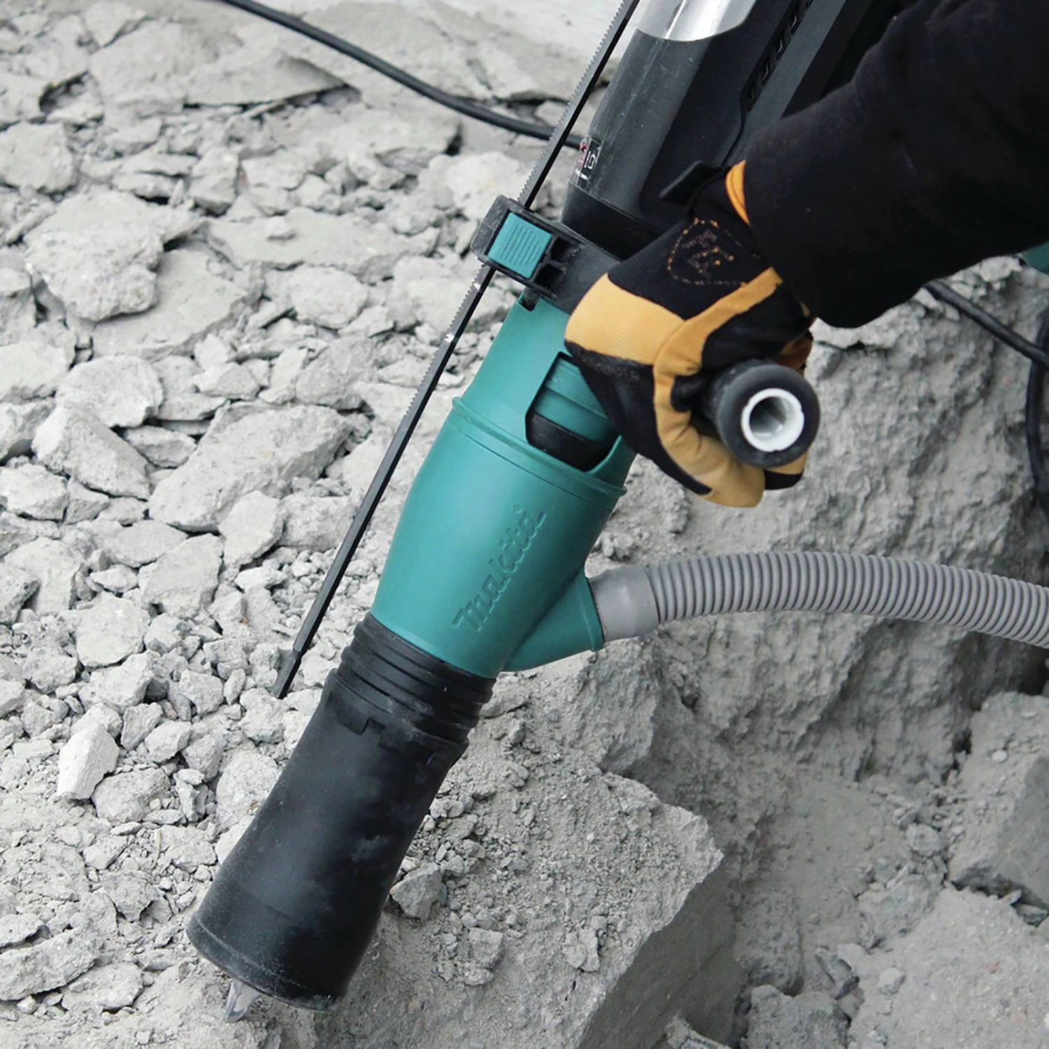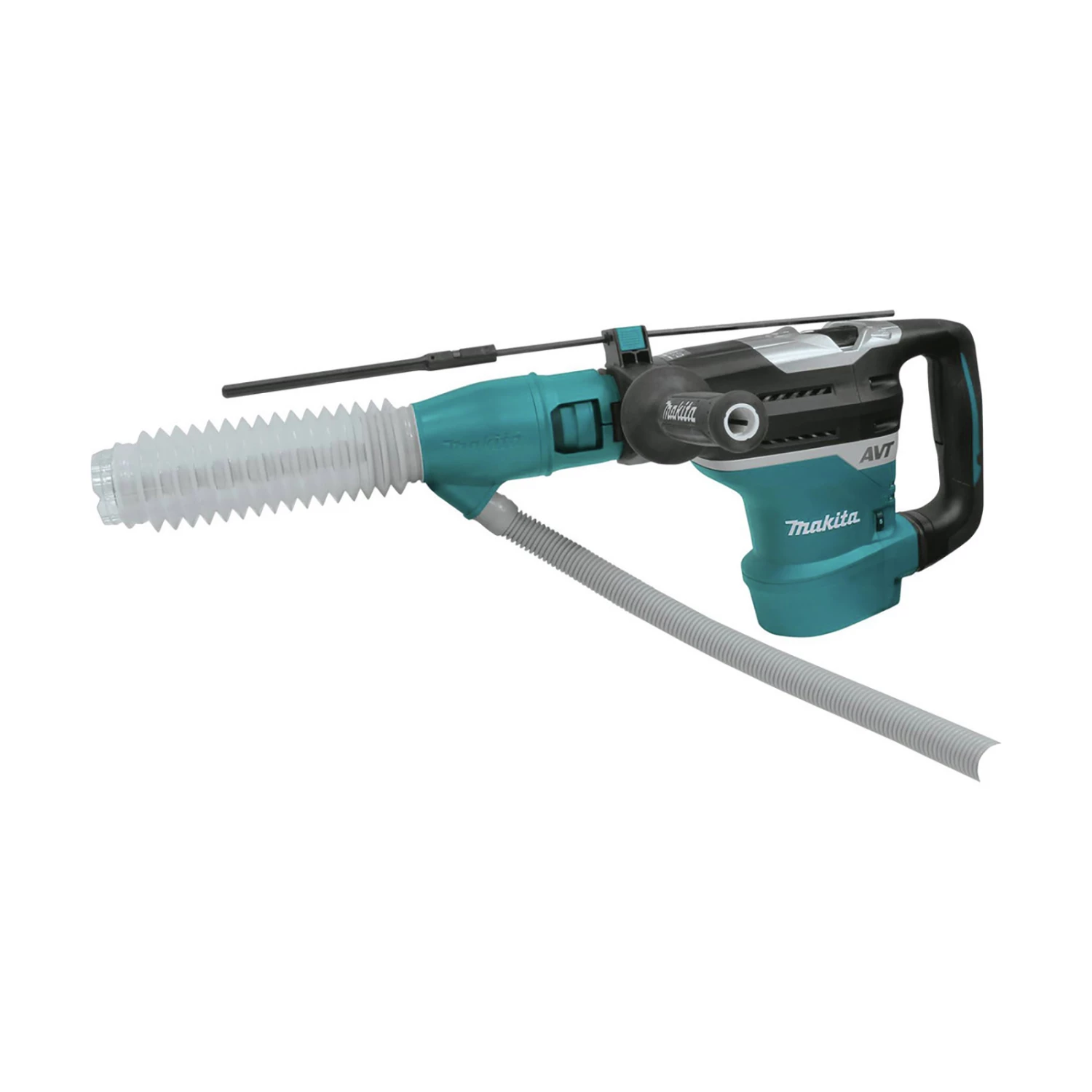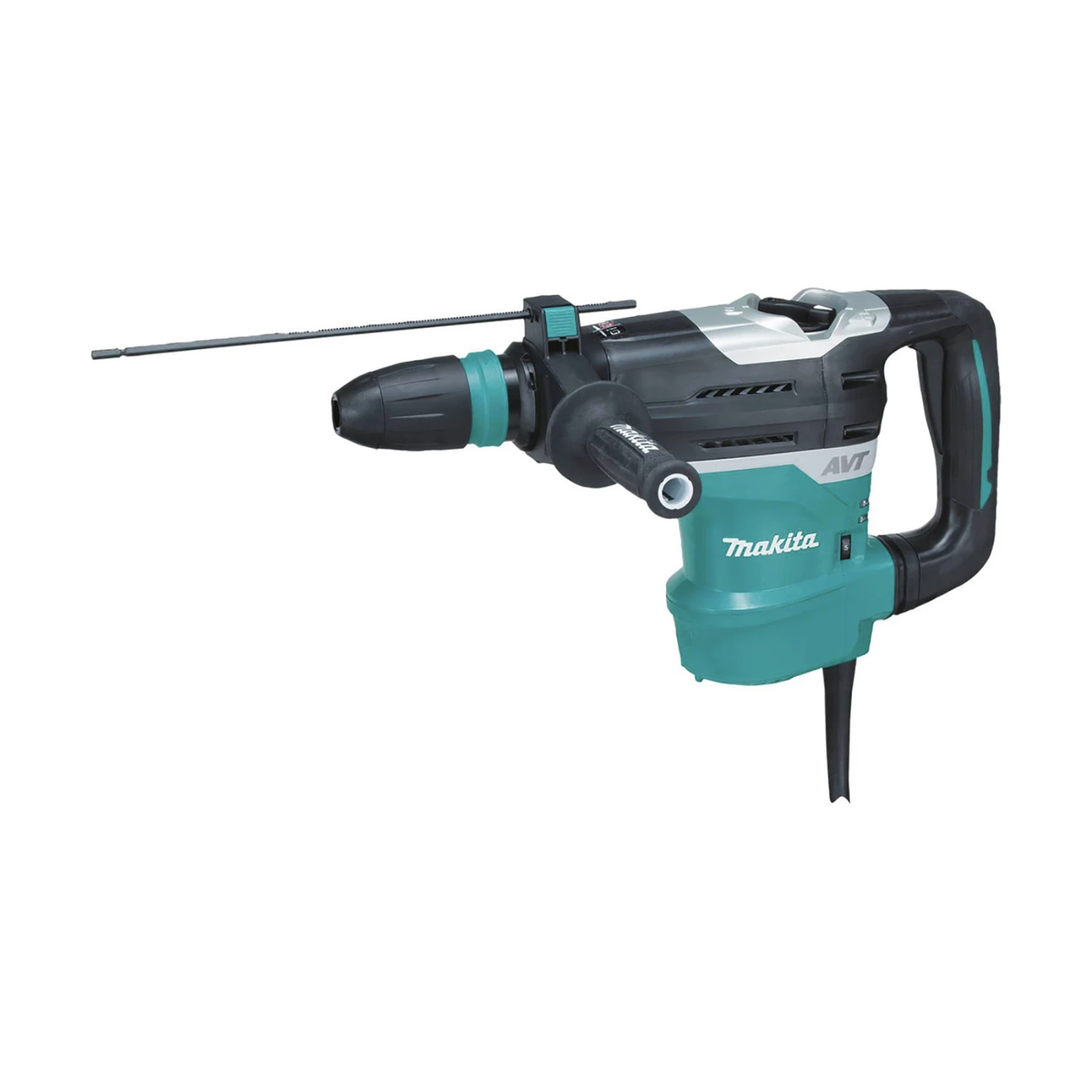 Makita HR4013C. Features: Powerful 11 amp motor delivers 8.4 ft.lbs. of impact energy to handle the most demanding applications. Anti-Vibration Technology (AVT) is a synchronized, three-component system that more effectively reduces vibration resulting in a low 5m/s2. Air actuated counterbalance directs air pressure from the crank and barrel room into the counterbalance cylinders to move counterweight pistons in the opposite direction of the drive piston actively reducing vibration. Vibration absorbing housing features a spring loaded main handle and upper housing that move independently of the motor and drive mechanism effectively isolating most of the vibration away from the user. Integrated damper spring at the base of the impact bolt is engineered to absorb impact vibrations from the drill bit. Lock-on or trigger activation in “Chipping Only” mode with a push button start/stop control for more convenient operation. Constant speed control automatically applies additional power to the motor to maintain speed under load to complete the most challenging jobs. Soft start suppresses start-up reaction for more control and better accuracy. L.E.D. service light notifies the user approximately 8 hours before the brushes need to be replaced. L.E.D. power light indicates switch failure or cord damage. Variable speed control dial enables user to match the speed to the application for greater versatility. Torque limiting clutch engineered to prevent gear damage by automatically disengaging gears if the bit binds. Sequential impact timing delivers timed hammering during rotation to minimize overlapping bit impacts for up to 50% faster drilling. Automatic brush cut-off protects commutator from damage for longer tool life. 2-mode operation for “Chipping Only” or “Hammering with Rotation.