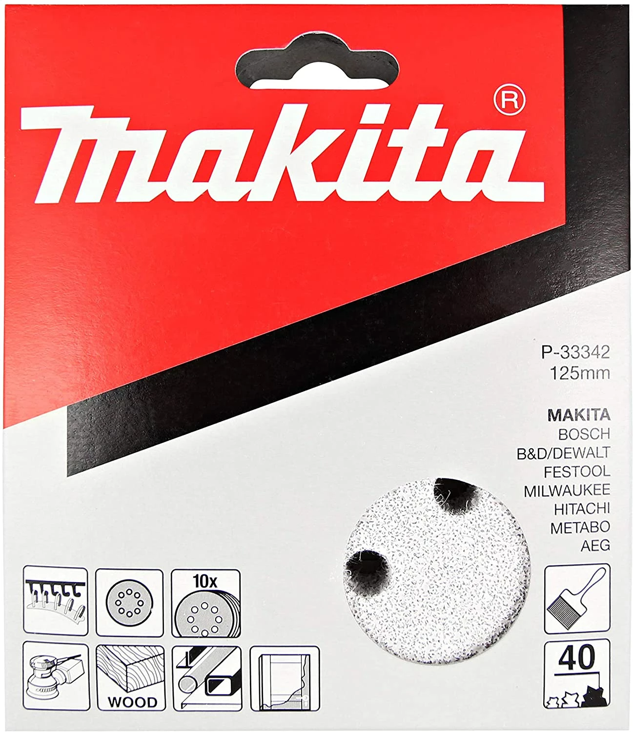 Makita abrasive White disc 125mm 40G. Makita offer the highest quality accessories to compliment their extensive power tool and garden tool range.