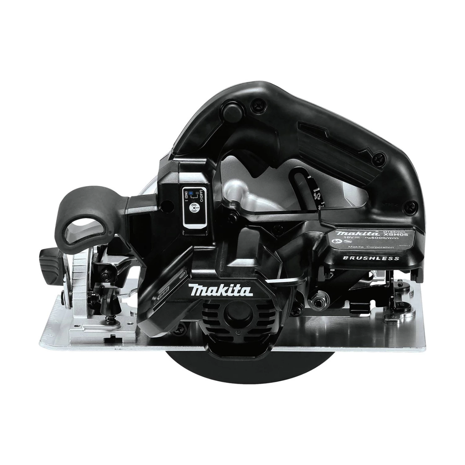 - The Sub-Compact 6-1/2 in. Circular Saw has a compact and ergonomic design at only 10-5/8 in. and 6.4 lbs. (with 18V LXT Compact 2.0 Ah battery). The compact size combined with the Makita-built brushless motor delivers up to 5,000 RPM and a superior power-to-weight ratio. The saw is equipped with Makita’s Automatic Speed Change technology, which adjusts cutting speed and torque under load for optimum cutting performance. The efficient brushless motor is electronically controlled to provide up to 50% longer run time than non-brushless motors, and in run-time testing the XSH05 made up to 174 cross cuts in 2×10 SPF lumber on a single charge of the 18V LXT 5.0 Ah battery (sold separately). For extended run time users can load up a high amp-hour 18V LXT battery (all sold separately) including 2.0 Ah (BL1820B), 3.0 Ah (BL1830B), 4.0 Ah (BL1840B), 5.0 Ah (BL1850B) or 6.0 Ah (BL1860B). Added convenience features include dual L.E.D. lights, electric brake, built-in tether notch (tether sold separately), and Extreme Protection Technology (XPT) for improved dust and water resistance in harsh job site conditions. For improved dust extraction, the rear dust port easily connects to a vacuum system (dust extraction accessories sold separately).